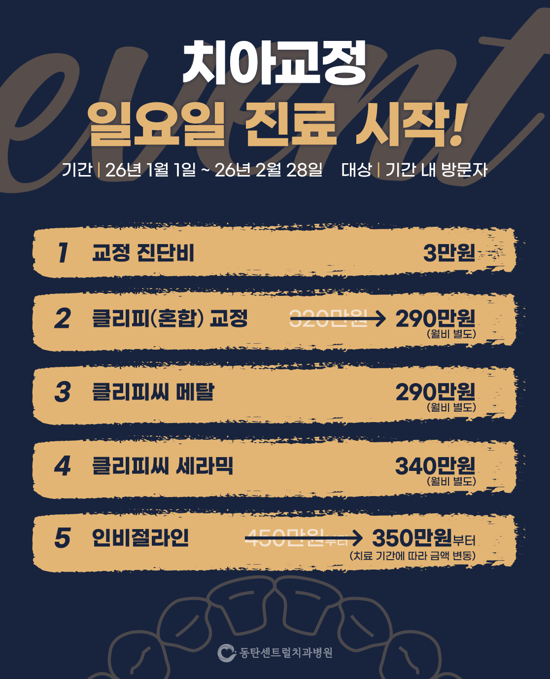 CONTACT US DONGTAN CENTRAL DENTAL HOSPITAL 주소 경기 화성시 동탄오산로 86-3, 504~506호 진료시간 월/화/수/목 AM 10 : 00 ~ PM 08 : 30 금요일 AM 10 : 00 ~ PM 07 : 00 토/일 AM 09 : 00 ~ PM 02 : 00 점심시간 PM 01 : 00 ~ PM 02 : 30 ※ 토, 일, 공휴일은 점심시간 없이 진료합니다.※ 공휴일 진료는 전화문의 주세요.